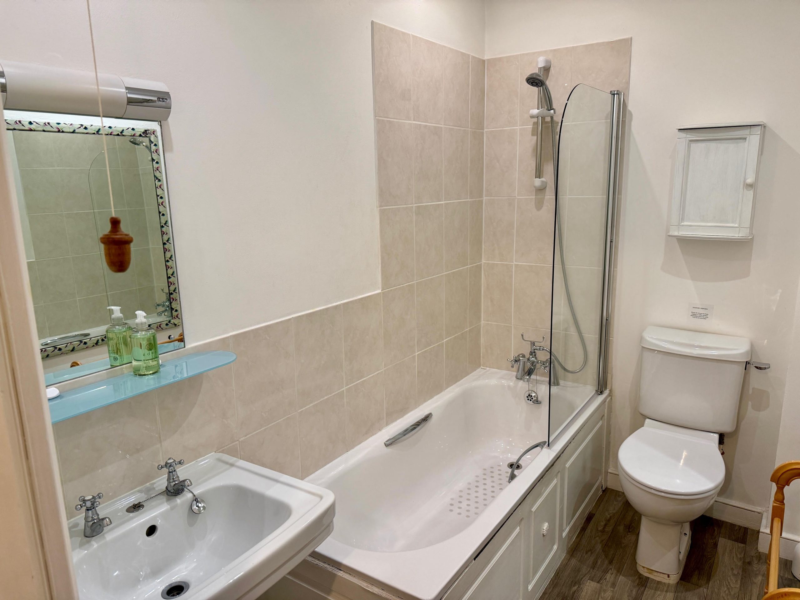 We have two of these spacious rooms, which can be made up as a super king bed or twin, please confirm your preference at the time of booking. Both have TV’s, wardrobes, tea & coffee facilities and en suite bathrooms, with all you need for a comfortable, restful stay.